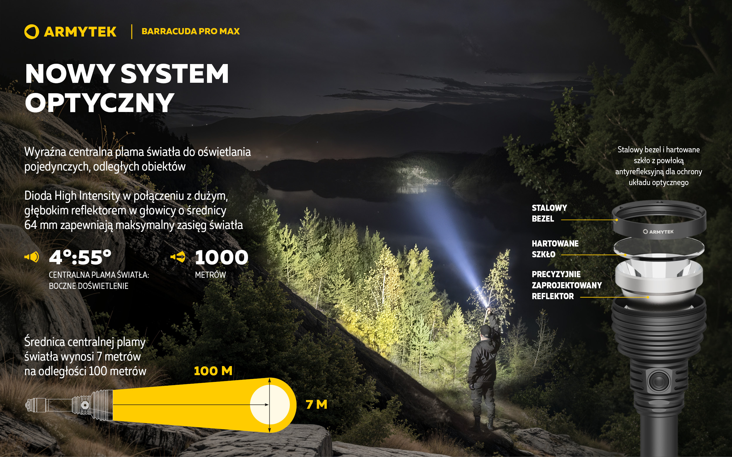 Ponad 15 lat doświadczenia w projektowaniu pozwoliło nam stworzyć najbardziej imponującą wiązkę światła dla szperaczy, która znacznie przewyższa inne.
