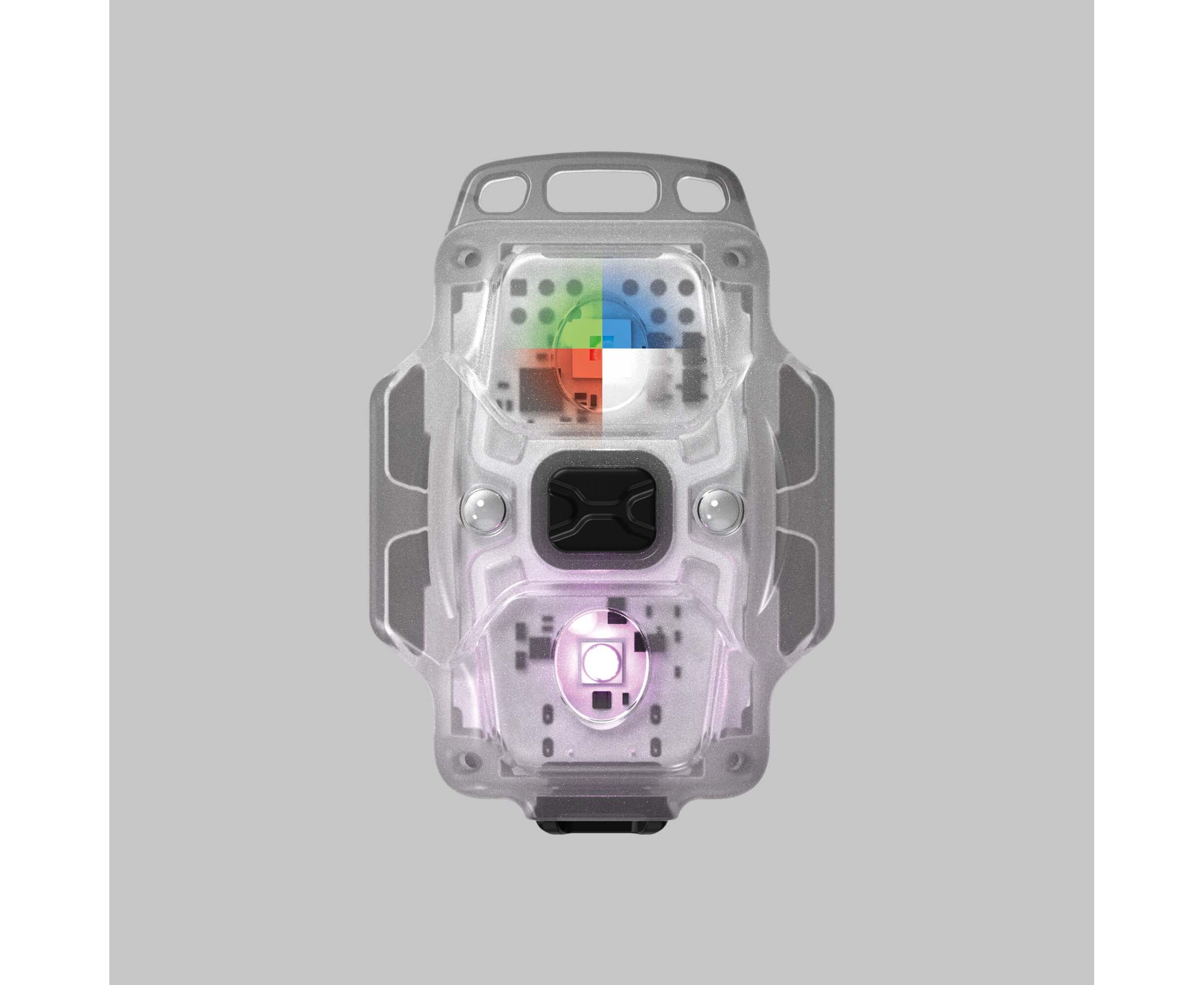 Crystal Pro IR is a flashlight with a universal set of light colors (white, red, green, blue), which is also equipped with an LED for infrared light. This combination allows using the flashlight not only in everyday activities, but also when solving specialized tasks. The model comes with a headband, a lanyard for wearing on the wrist or around the neck, silicone rings for mounting on sporting gear, as well as a clip and Velcro mounting tape for fixing to a belt or clothes, including specialized uniforms. The design, body material and special arrangement of LEDs provide wide beam angle of 180°, optimal for close-range application.