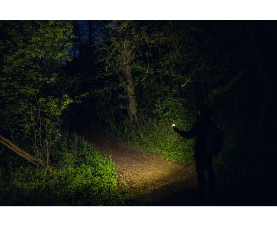 Konstrukcja, materiał korpusu i specjalne rozmieszczenie diod zapewniają szeroki kąt świecenia wynoszący 180°, optymalny do zastosowań bliskiego zasięgu. Model jest wyposażony w pojemny wbudowany akumulator Li-Pol 600 mAh jak na tak kompaktowe wymiary oraz wejście ładowania USB-C.